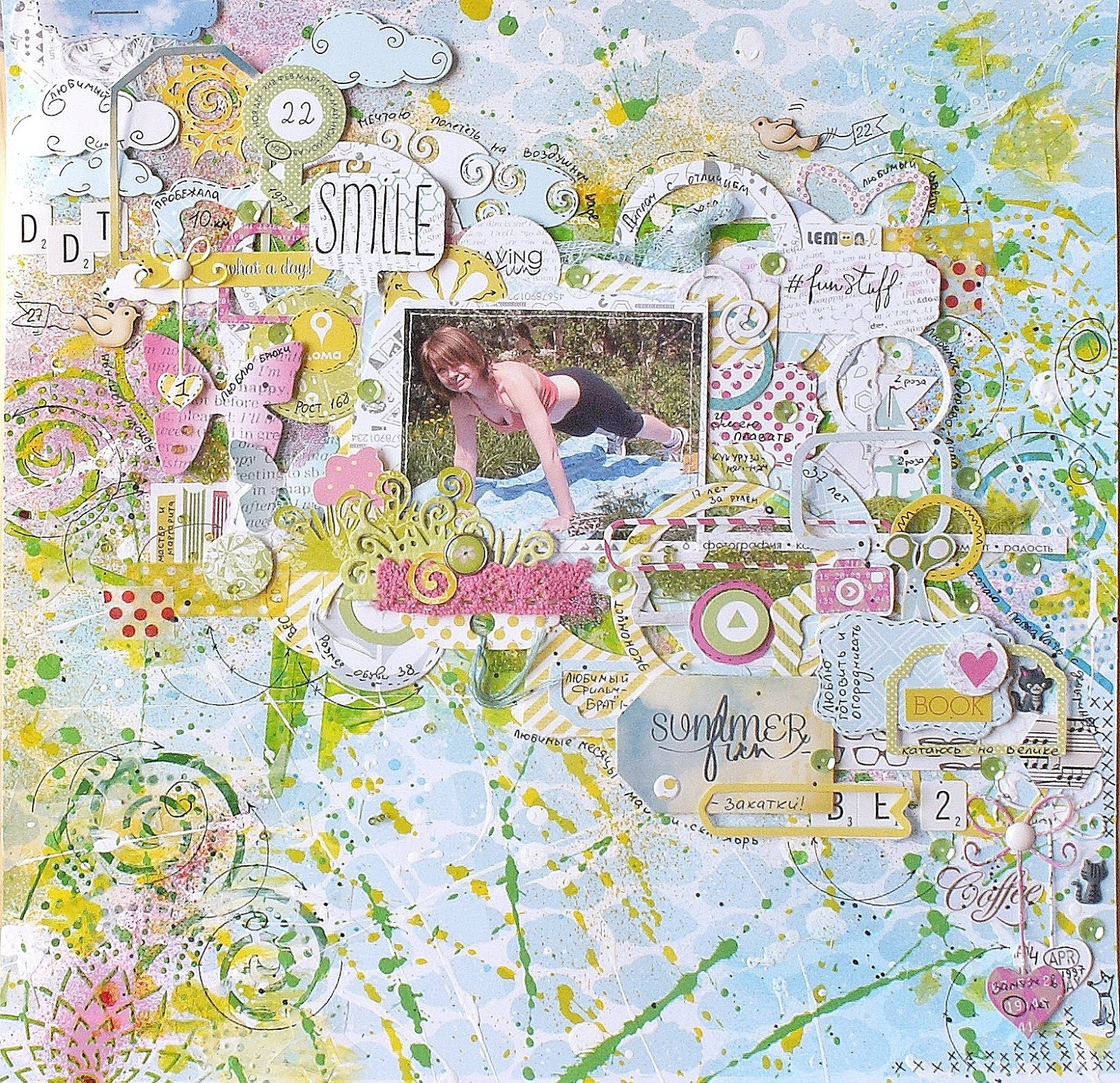 Хорошо, что накануне у нас отключали свет, и я от безделья нарезала Биг-шотом кучу кружочков, рамочек. Всякие высечки ножницами повырезала. Не пожалела даже листочка своей любимой бумажки Lemon Owl из новой коллекции Weekend Trip.